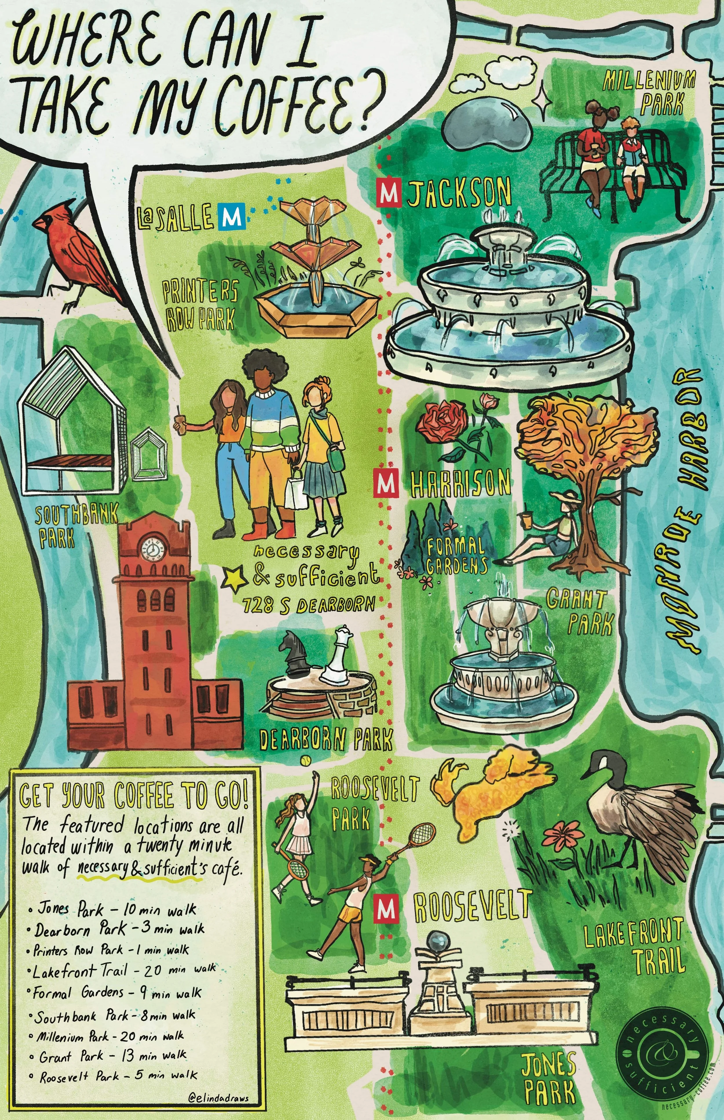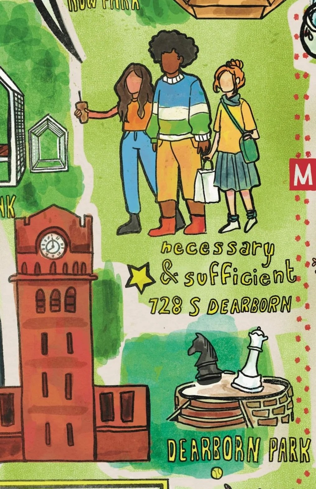 Client: Illustrated map for necessary + sufficient cafe Printer’s Row location.